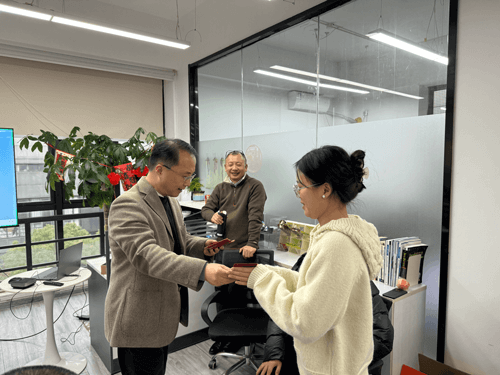 在表彰结束后,吴总亲自为全体员工派送红包福利,红包承载着对每位奋斗者的认可与祝福,现场洋溢着欢乐祥和的节日氛围。
